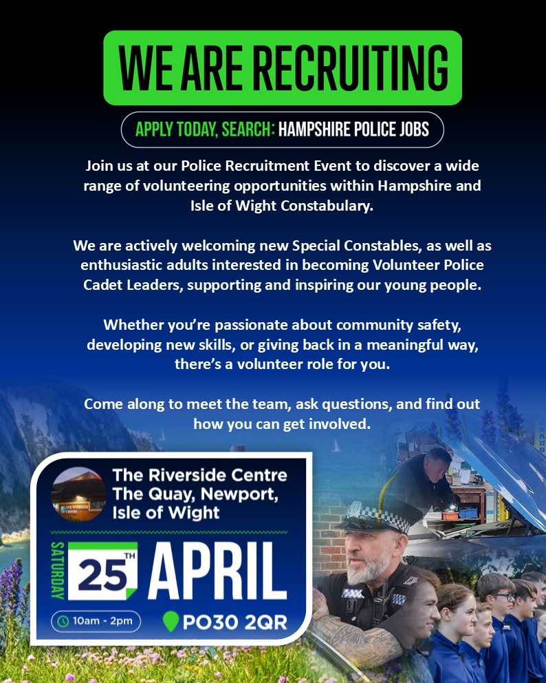 Join us at our upcoming Police Recruitment Event to discover a wide range of volunteering opportunities within Hampshire and Isle of Wight Constabulary.